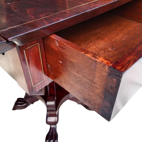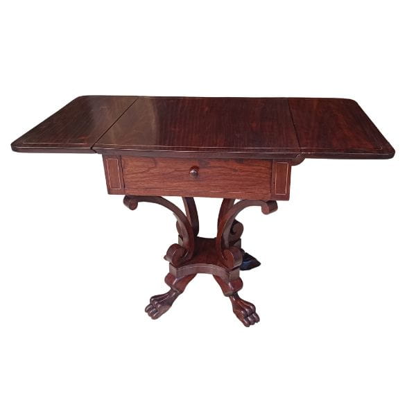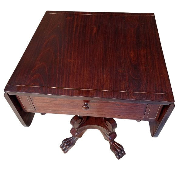 Mesa de madera con tablero abatible y cajón – estilo clásico